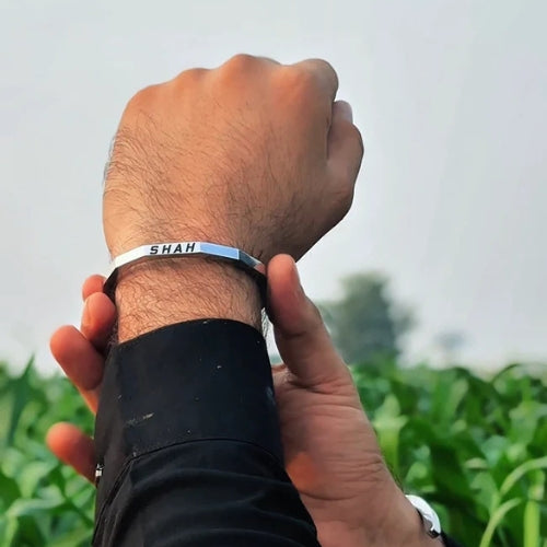 dd a touch of elegance and identity to your style with our Custom Name Karra — a sleek, modern bracelet designed just for you. Crafted from high-quality stainless steel, this minimalist piece can be engraved with any name or word of your choice, making it a meaningful accessory for everyday wear or a thoughtful gift for someone special.
